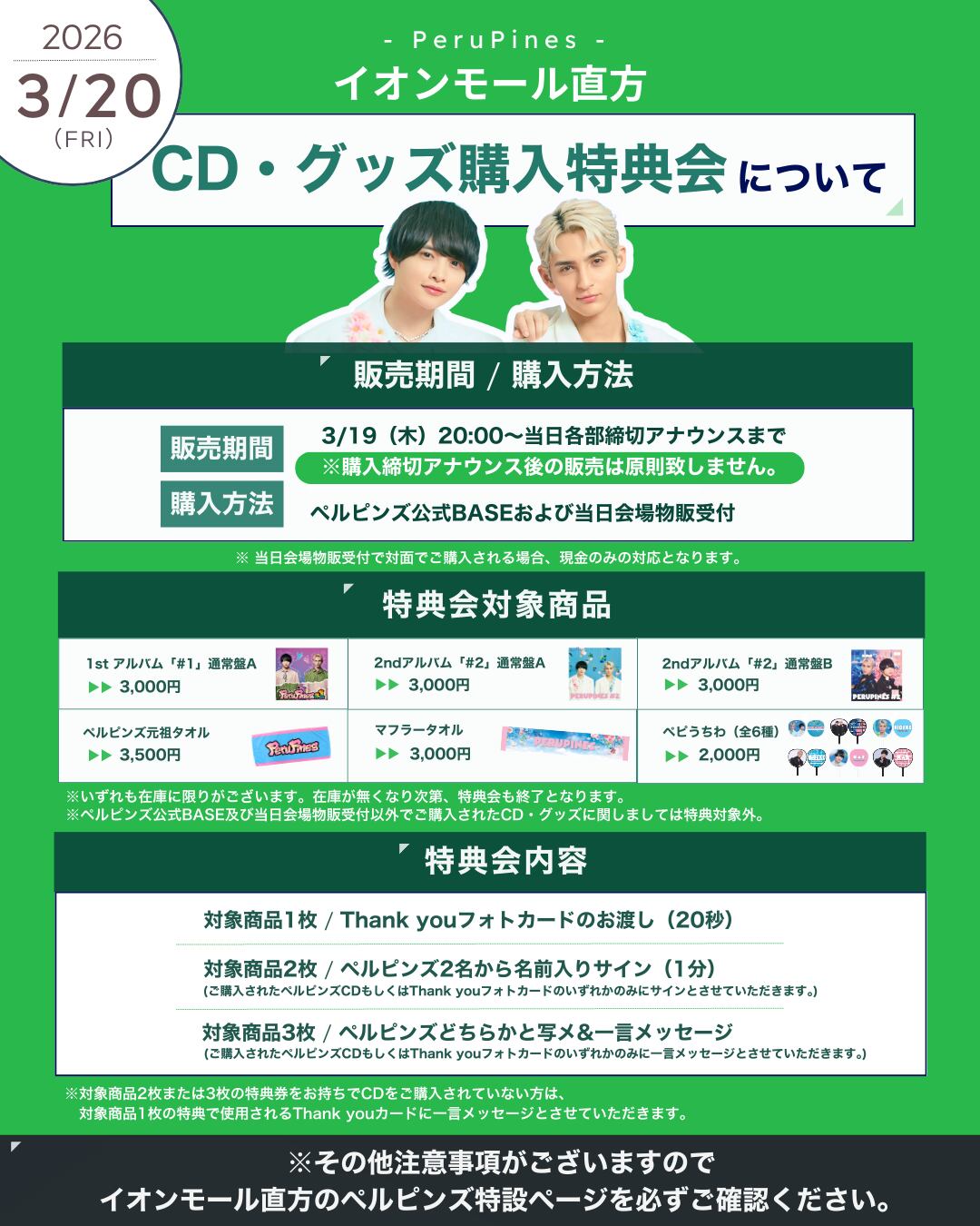 ※ 特典権利は原則3/20の1部限定となり、後日への消費は致しかねます。